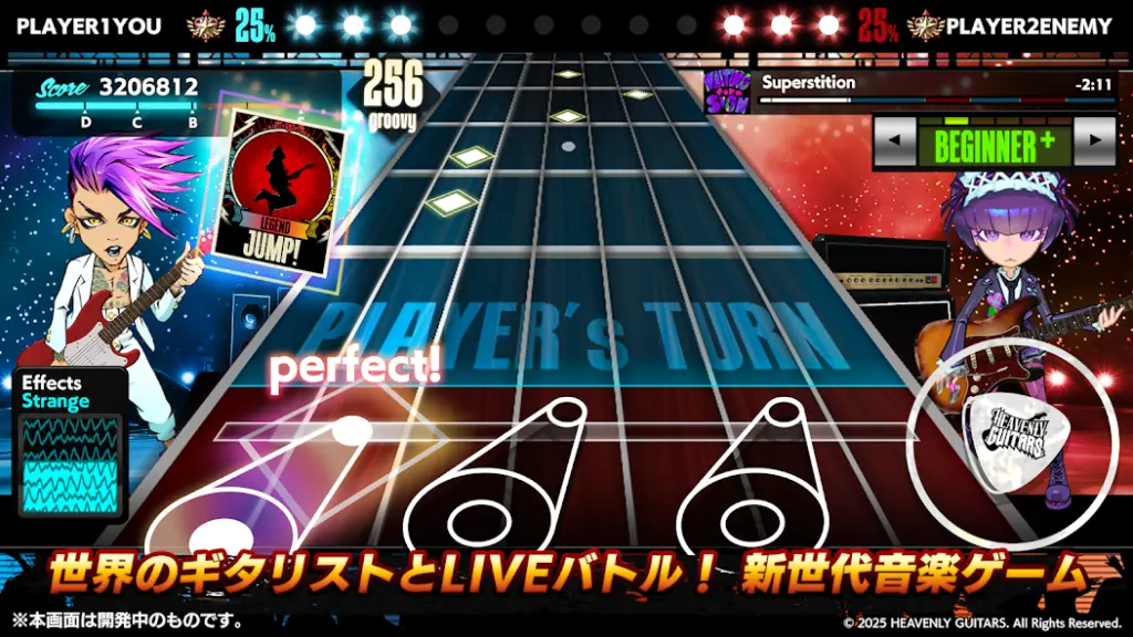 Heavenly Guitarsで熱狂LIVEと自由カスタム体験♪ リアルタイム難易度チェンジでLIVEバトルを制覇しよう♪ 『Heavenly Guitars』では、従来のリズムゲームとはひと味違う要素として、LIVEバトル中にリアルタイムで難易度を変えられるんです♪ プレイヤーは相...